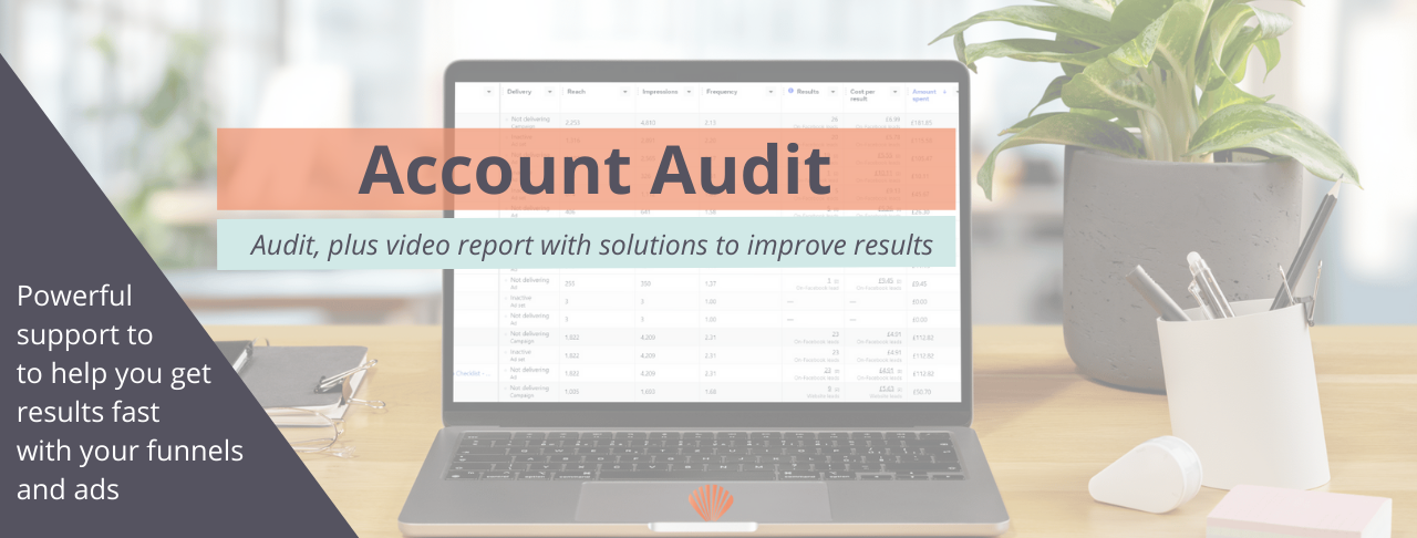 An Audit is a thorough analysis of your Ad Account where I take a look at your Facebook and Instagram ad campaign(s) and share insights and solutions on how to improve results.